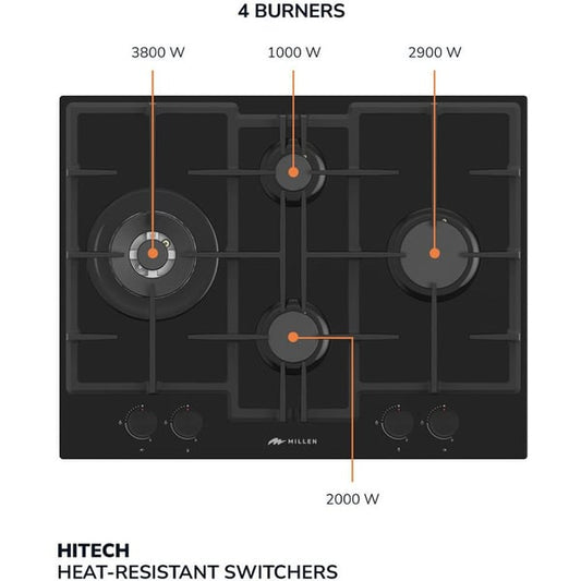 Millen Built In 4 burners Gas Hob 65cm|MGHG6503BL