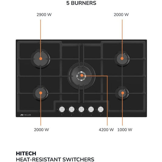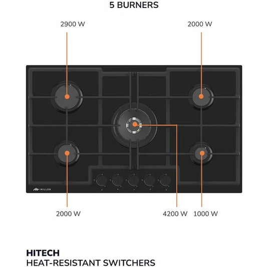 Millen Built In 5 Burner Gas Hob 90cm|MGHG9001BL
