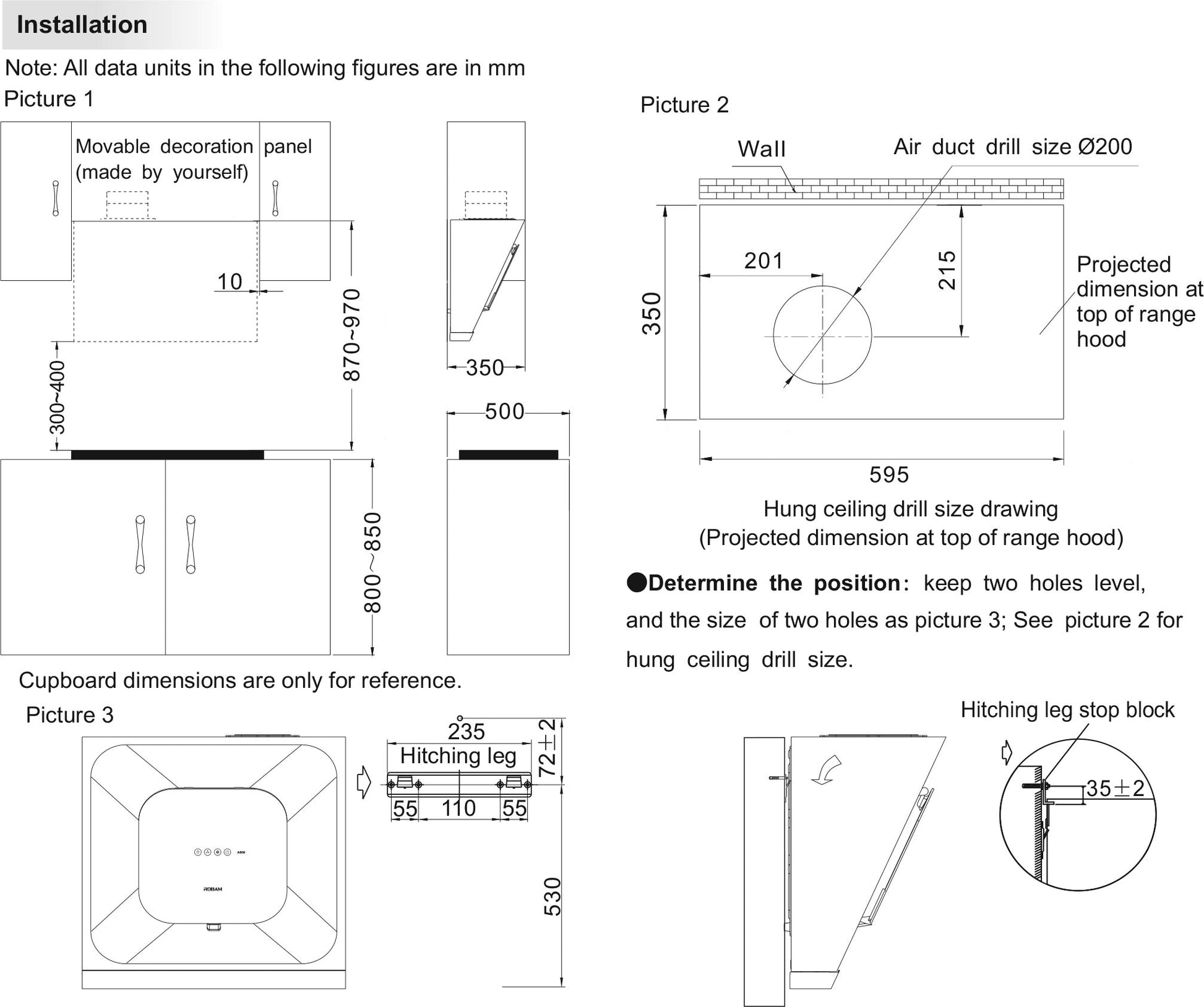 Robam Built in Range Hood | Side Draft type | Model: A610 | 60cm | Airflow: 1020 m3/hr | Pressure: 400 Pa | Noise: < 58dB|A610