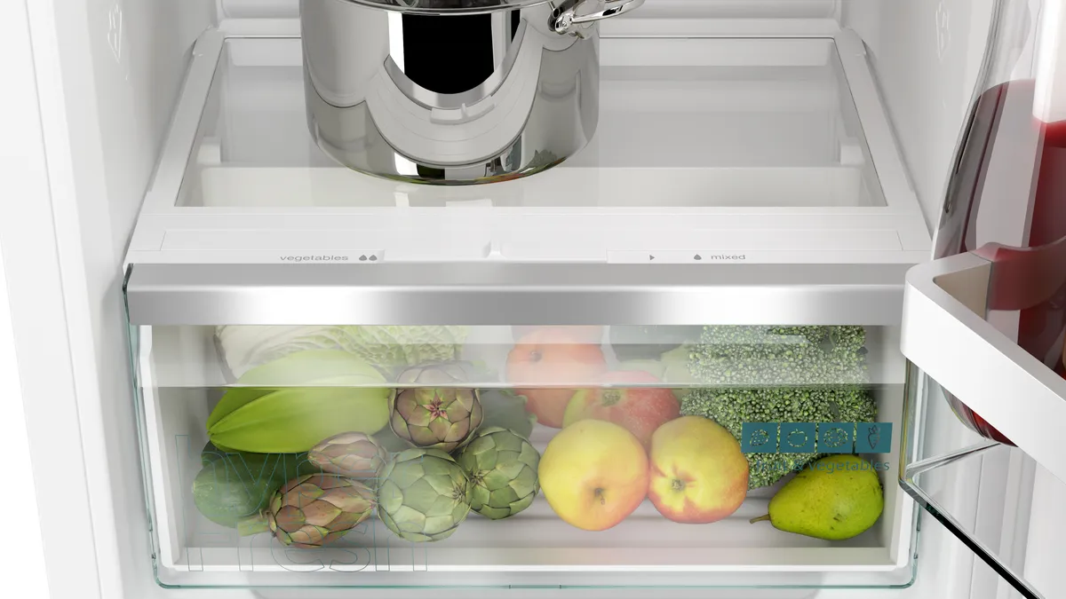 Fruit and vegetables stay fresh for longer in the hyperFresh drawer thanks to the humidity slider